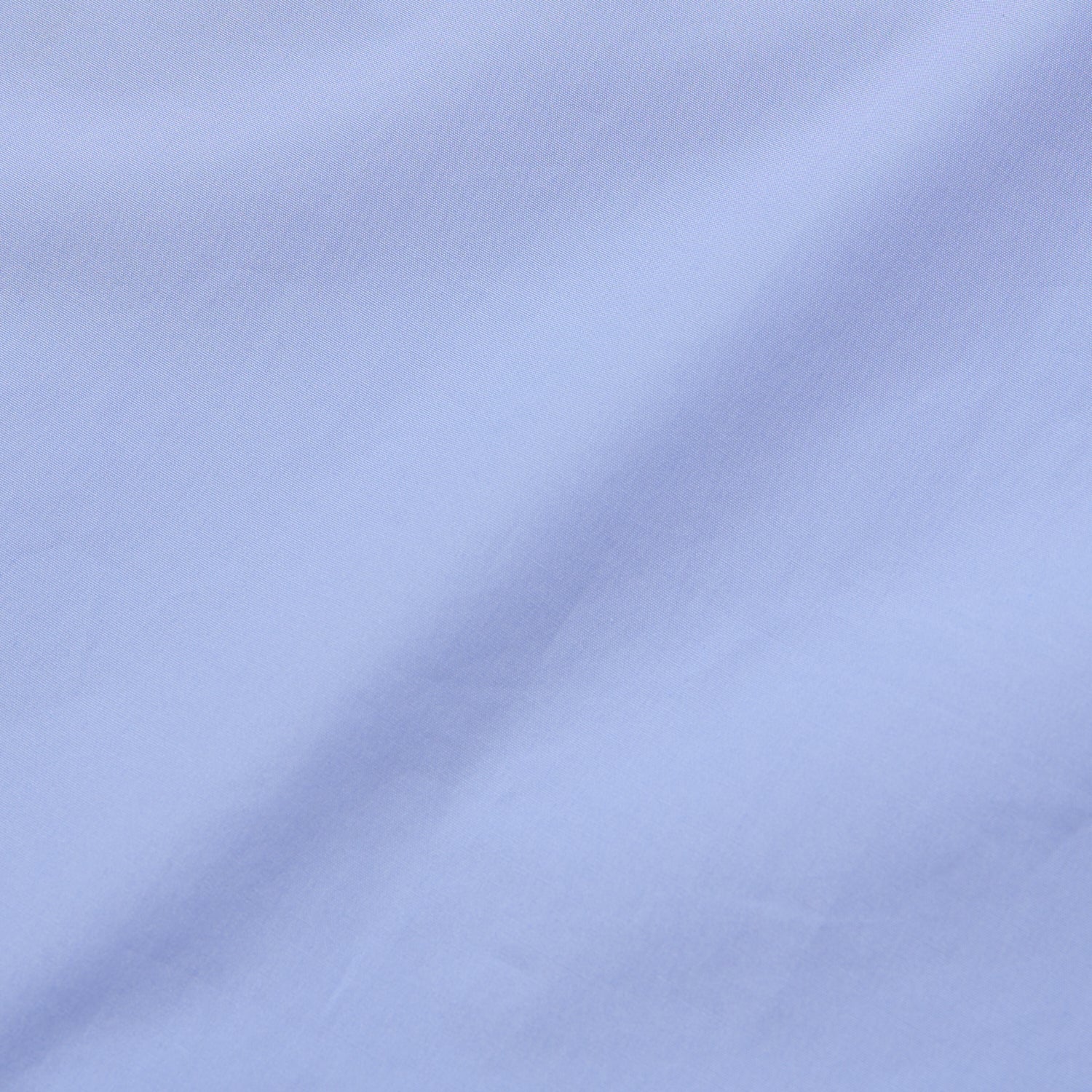 高密度ながらさらっとした肌触りに綿100%ながらシルクのような光沢。深みのあるサックスブルーの色。生地をよく見ると様々な色がちらちらと映る魅力があります。普段手にするシャツ地とは明らかに違う質感。