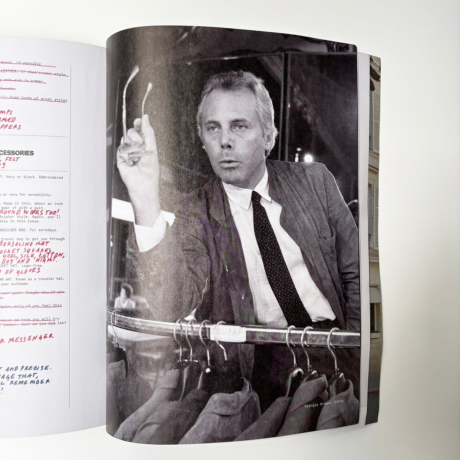 アイテム切りの紹介ではクラークスデザートブーツやlevisエンジニアードジーンズの特集。昨月亡くなったジョルジョ・アルマーニ理想のワードローブ。最後は靴とアクセサリー紹介で締めます。