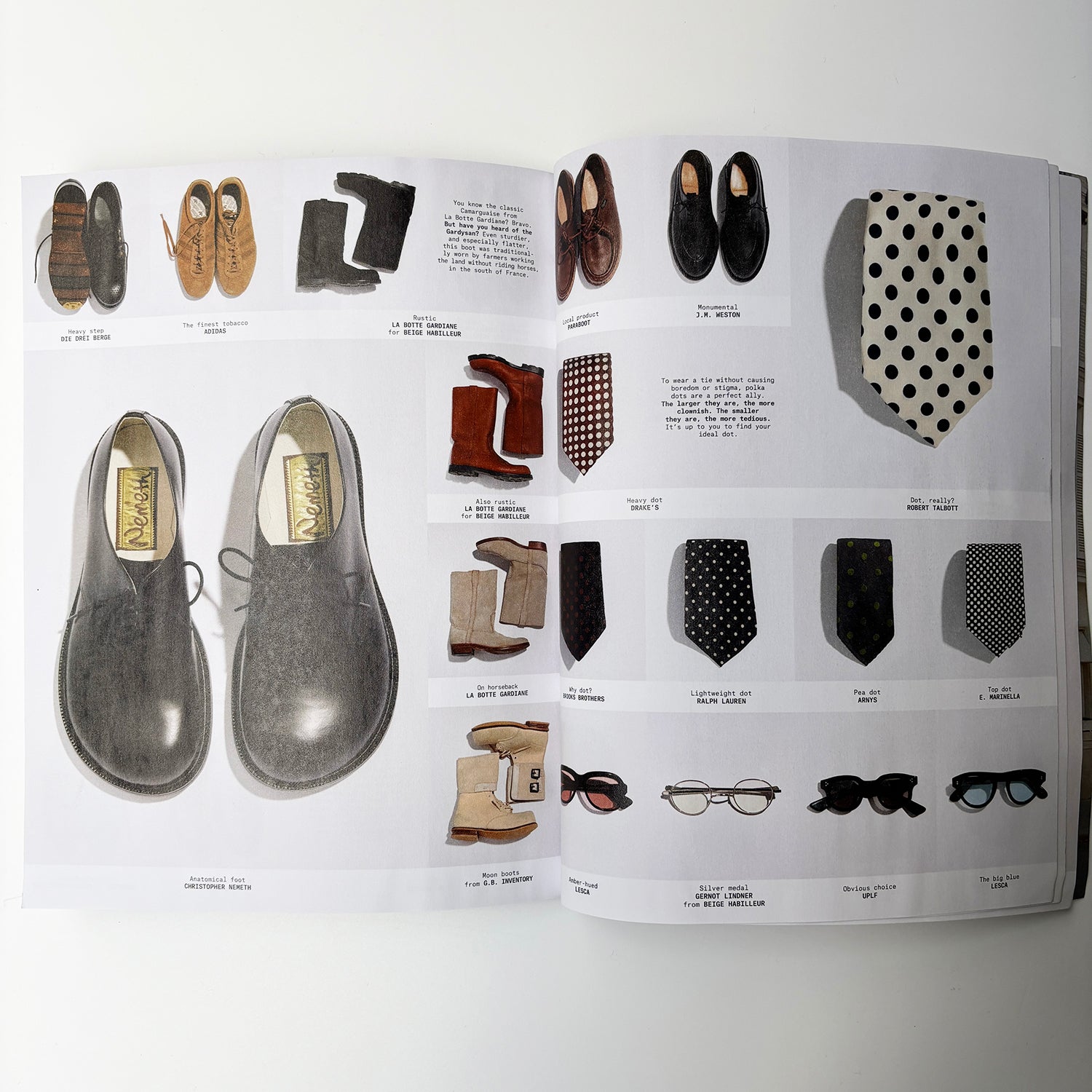 建築家/インテリアデザイナー、マーティンBのワードローブ。スタイリスト、ゴーティエ・ボルサレロによる50ルックページは、今号も一つ一つのアイテムの組み方が丁寧。だいぶボロいユーズドアイテムを使っているのに品あるよう映るのは「これがエスプリなのかしら?」と考えちゃいます。