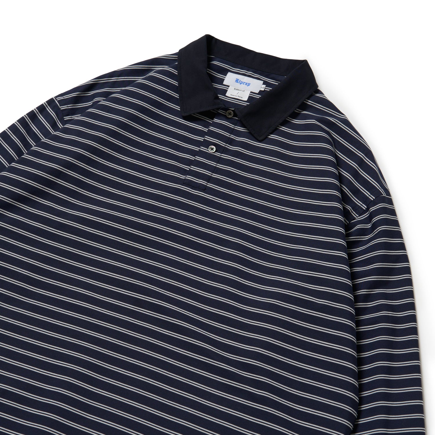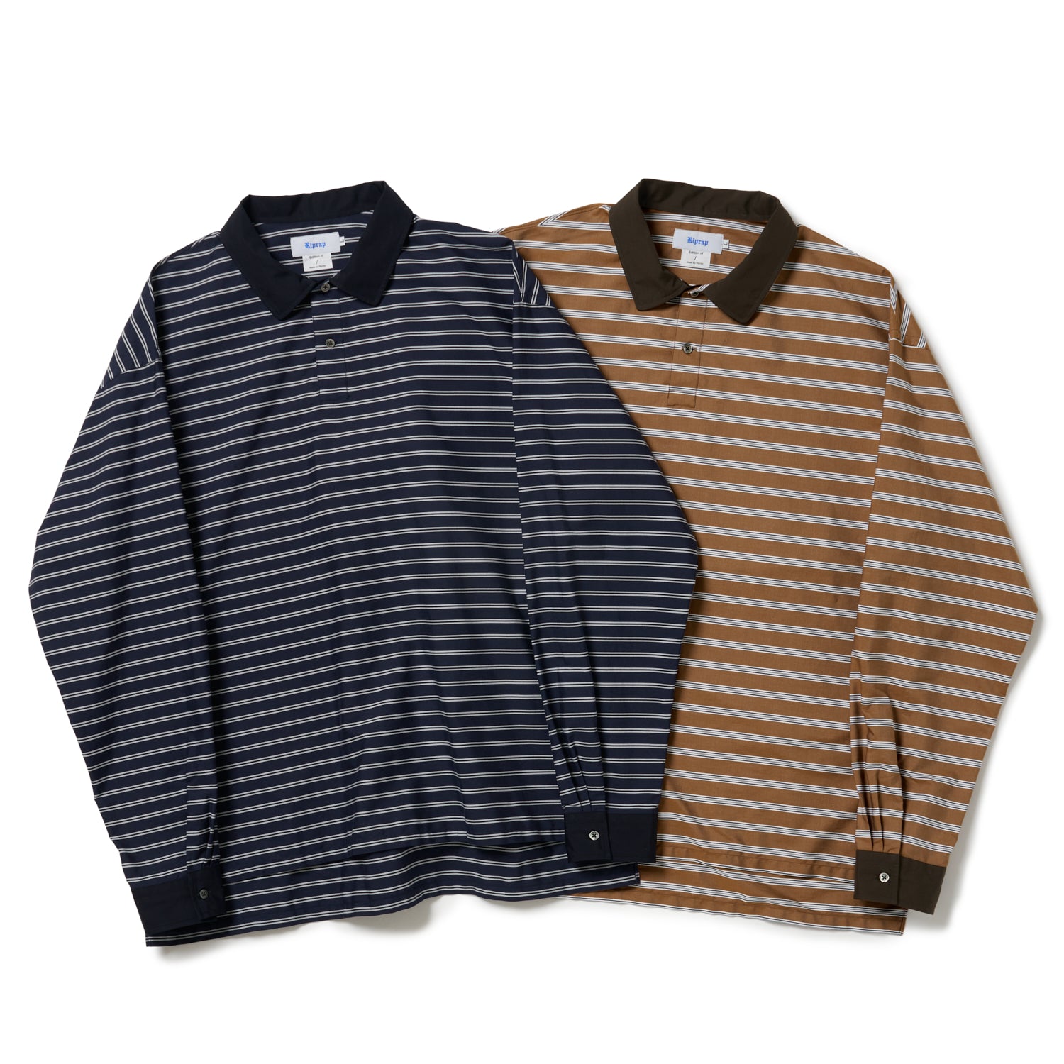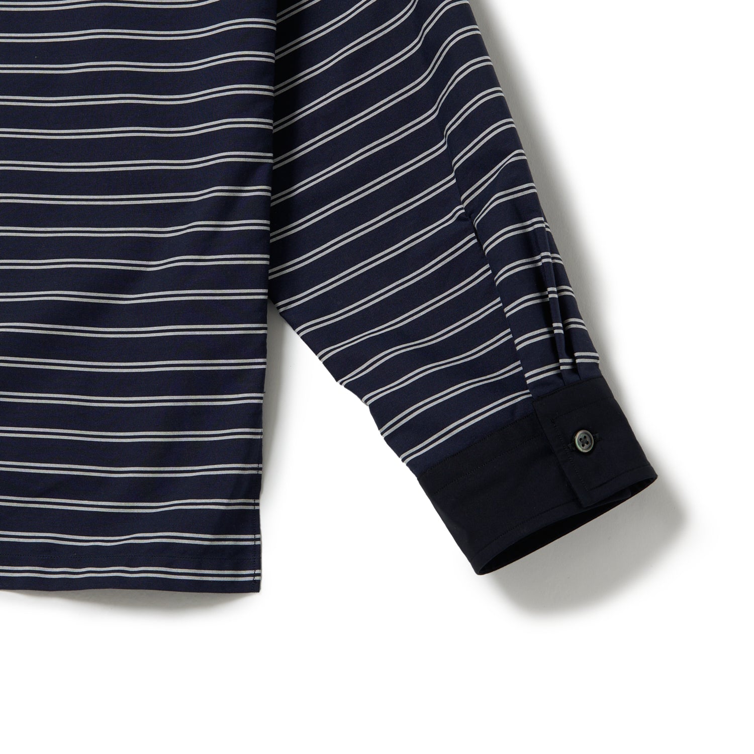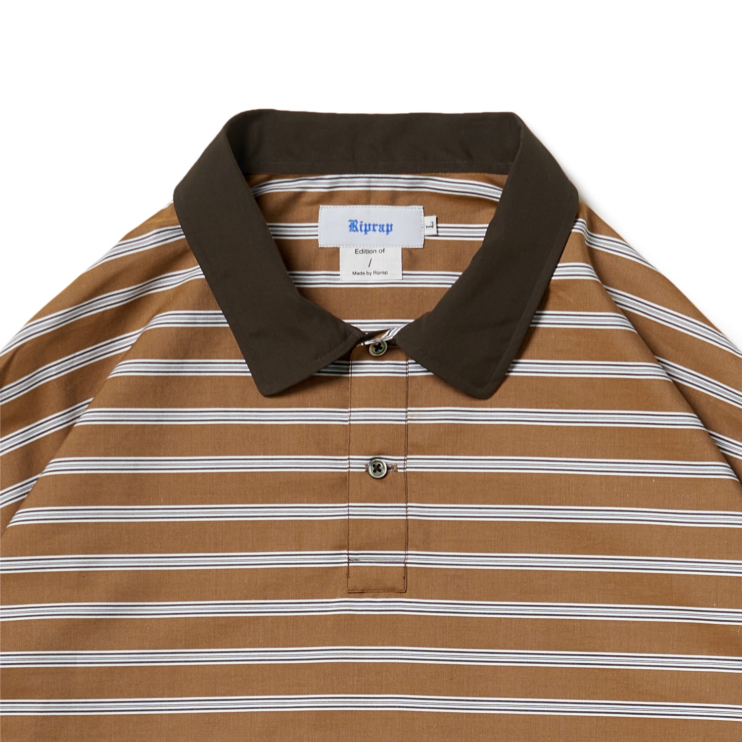 Riprapのポロシェイプドシャツ(コットンポプリンストライプ)。