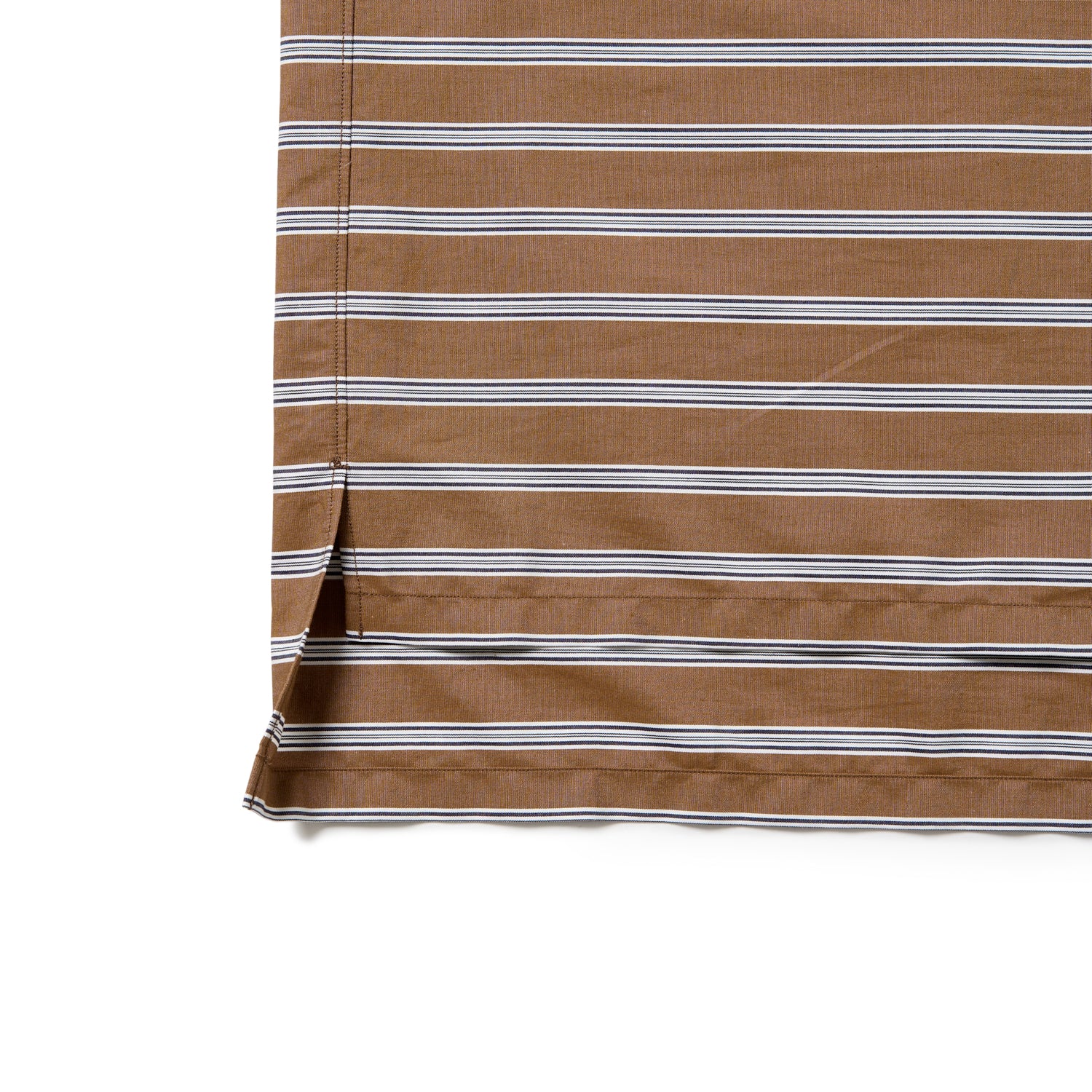 縦縞ストライプのシャツ地をリバース使い(生地方向を横にして裁断)したボーダーパターン2タイプ。カラーはネイビー/ホワイトとブリック/ネイビーの2種を用意。