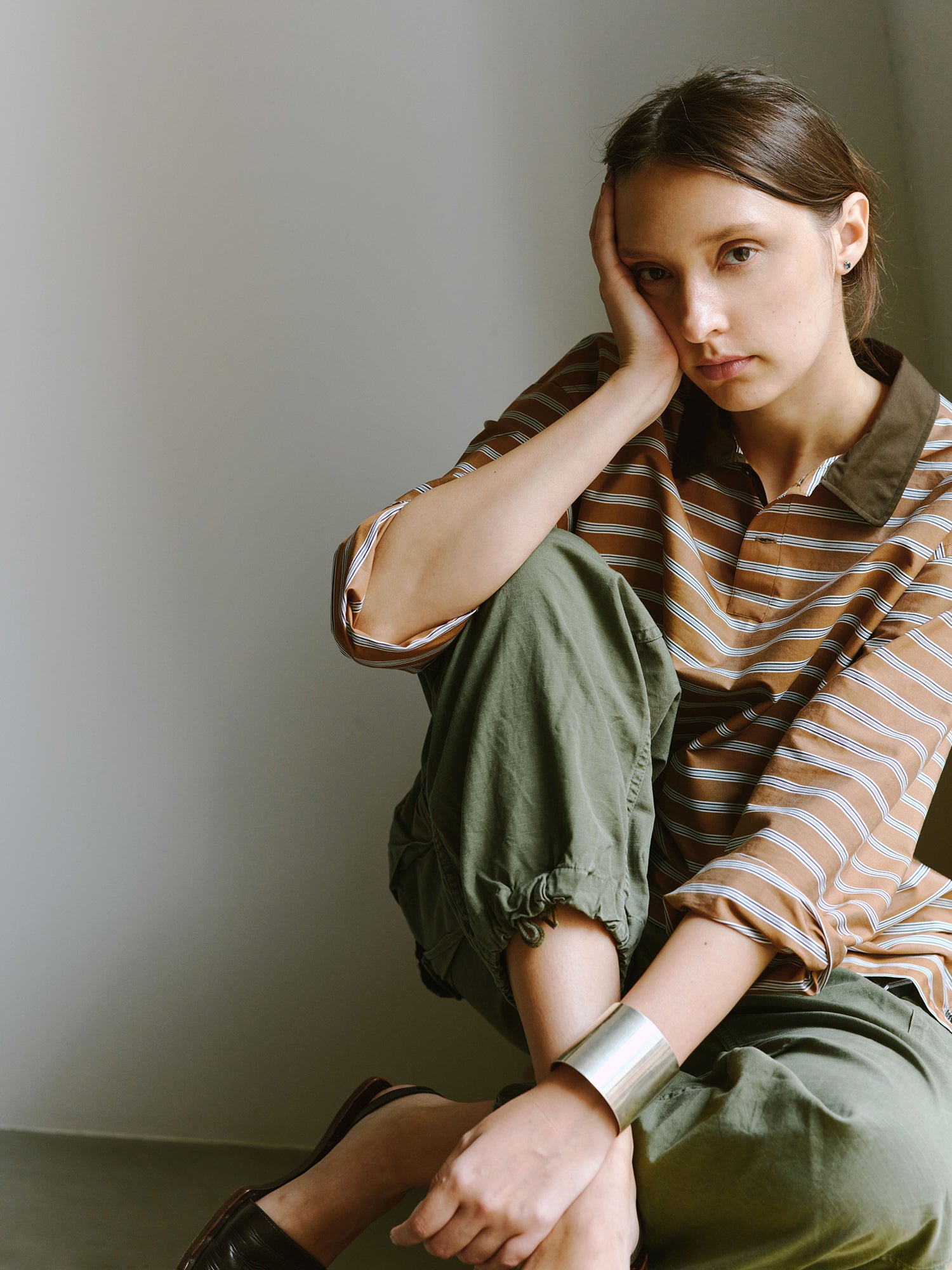 ぼくはこれまで制作したヘヴィーウェイトポロをずっと気に入って着ているので、その感覚をシャツで表せたらと思い企画した一型。
