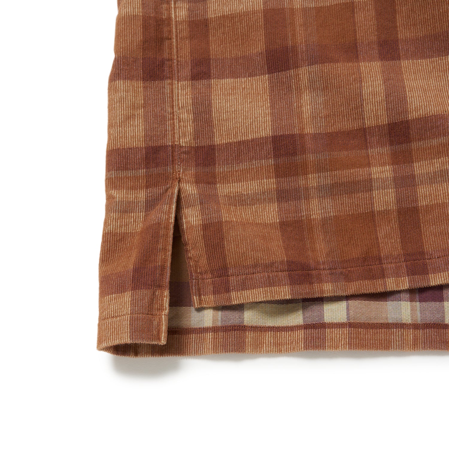 今シーズンは先(糸)染めプラッドパターン(チェック柄)でコーデュロイ。100%コットン。デザイナーの好みが集結した夢のようなファブリックを採用。