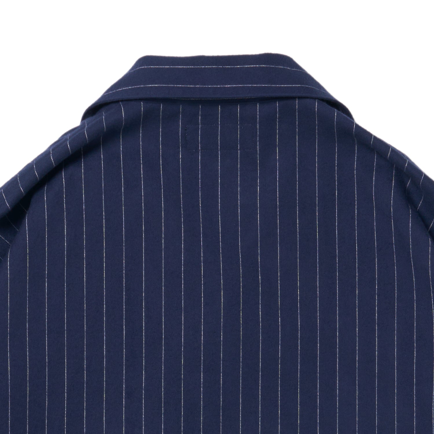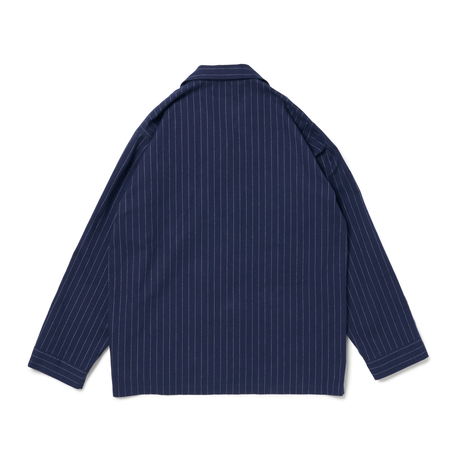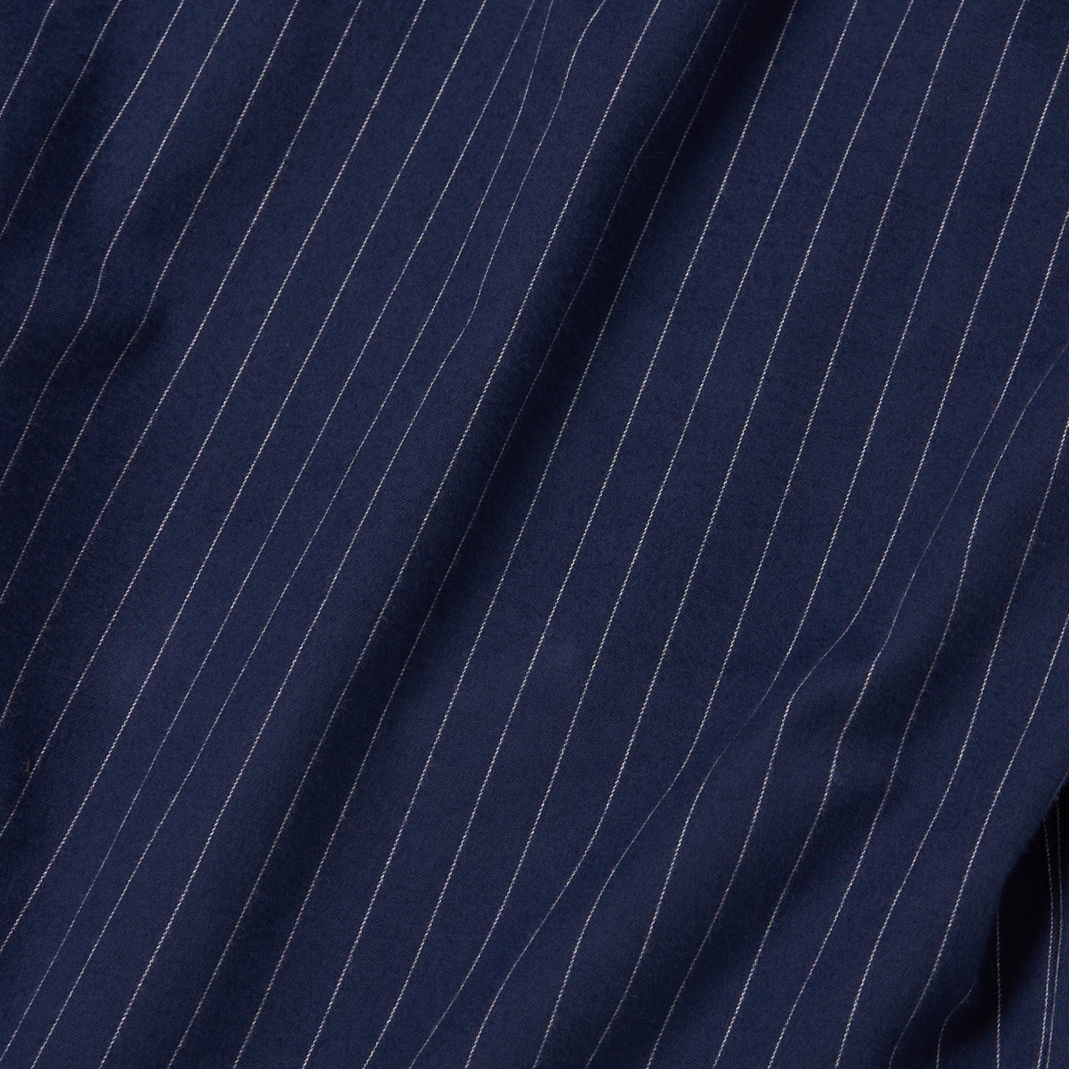 生地にはとても柔らかなコットンフランネルを採用。カラーはおじさんが着てそうなスーツでよくあるダークネイビー/ホワイトのチョークトライプ(そこがポイント♥)。