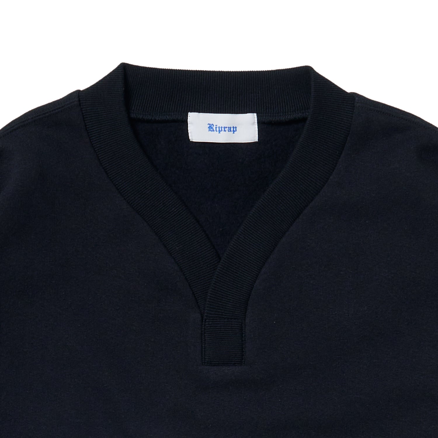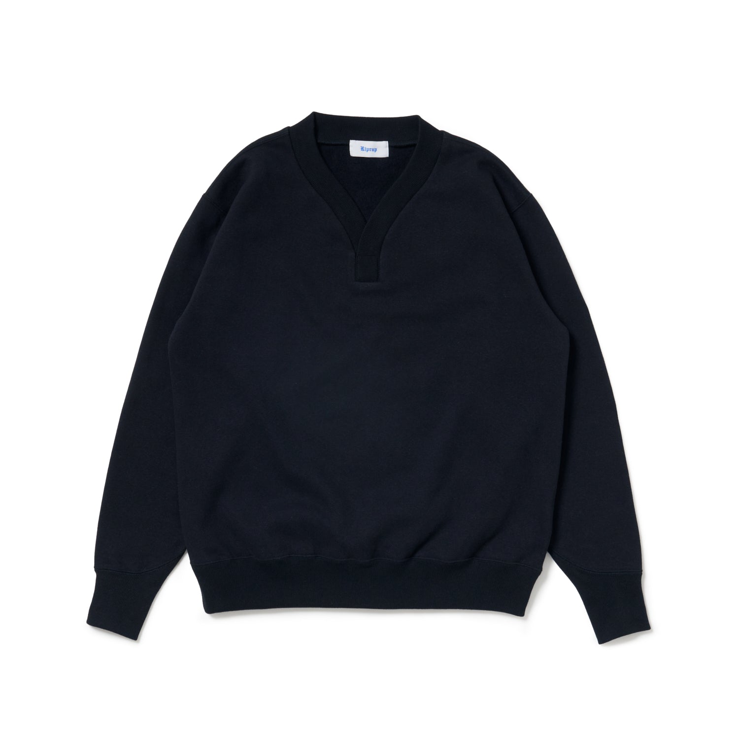 インカーブ&アウトカーブの美しい線で表したY字の衿ぐりが特徴のスウェット。 これは本来ミリタリーセーターで使用されていた、クロスオーバーしたVネックディテールをカットソーに落とし込んだデザイン。