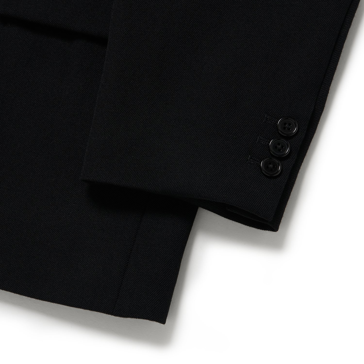 お尻まで隠れる着丈に、少しゆとりのあるアームホール。ノッチドラペルの巾は9.5cmとクラシカルな印象に。